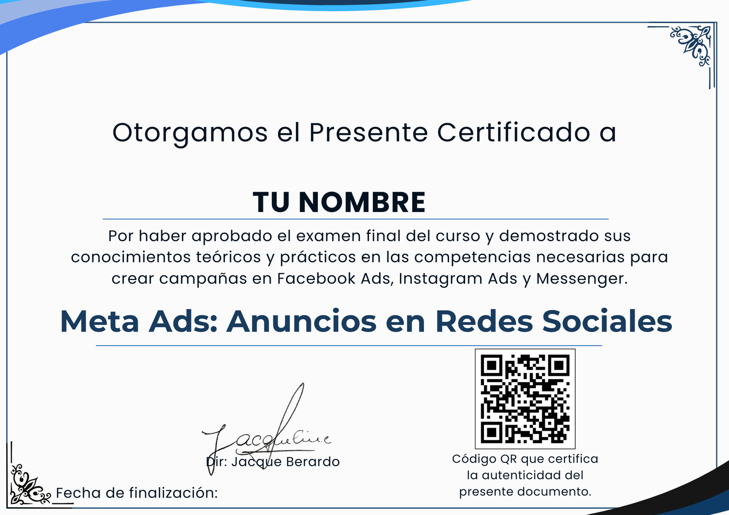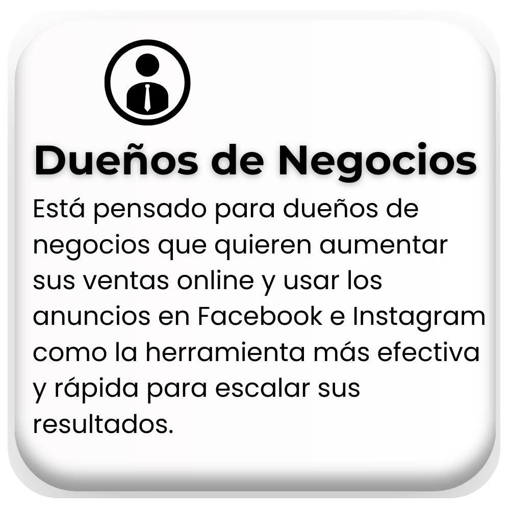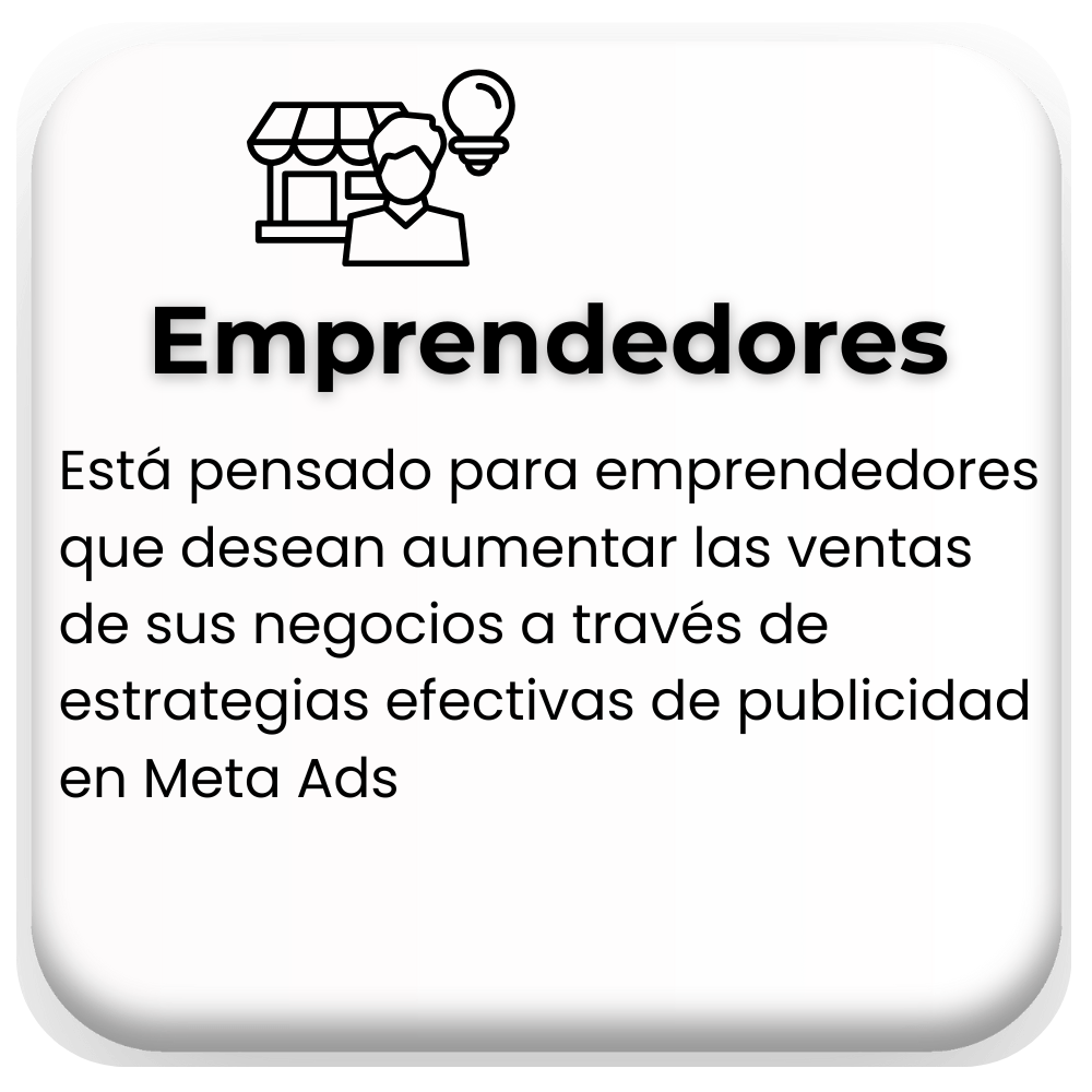 Este curso está dirigido a cualquier persona que quiera aprender a gestionar y optimizar campañas de Facebook Ads de forma creativa, práctica y fácil. Ya sea para impulsar proyectos personales, aumentar la presencia de tu marca en redes sociales o potenciar pequeñas empresas, aquí aprenderás a obtener resultados profesionales sin tener que lidiar con herramientas complejas y abrumadoras.